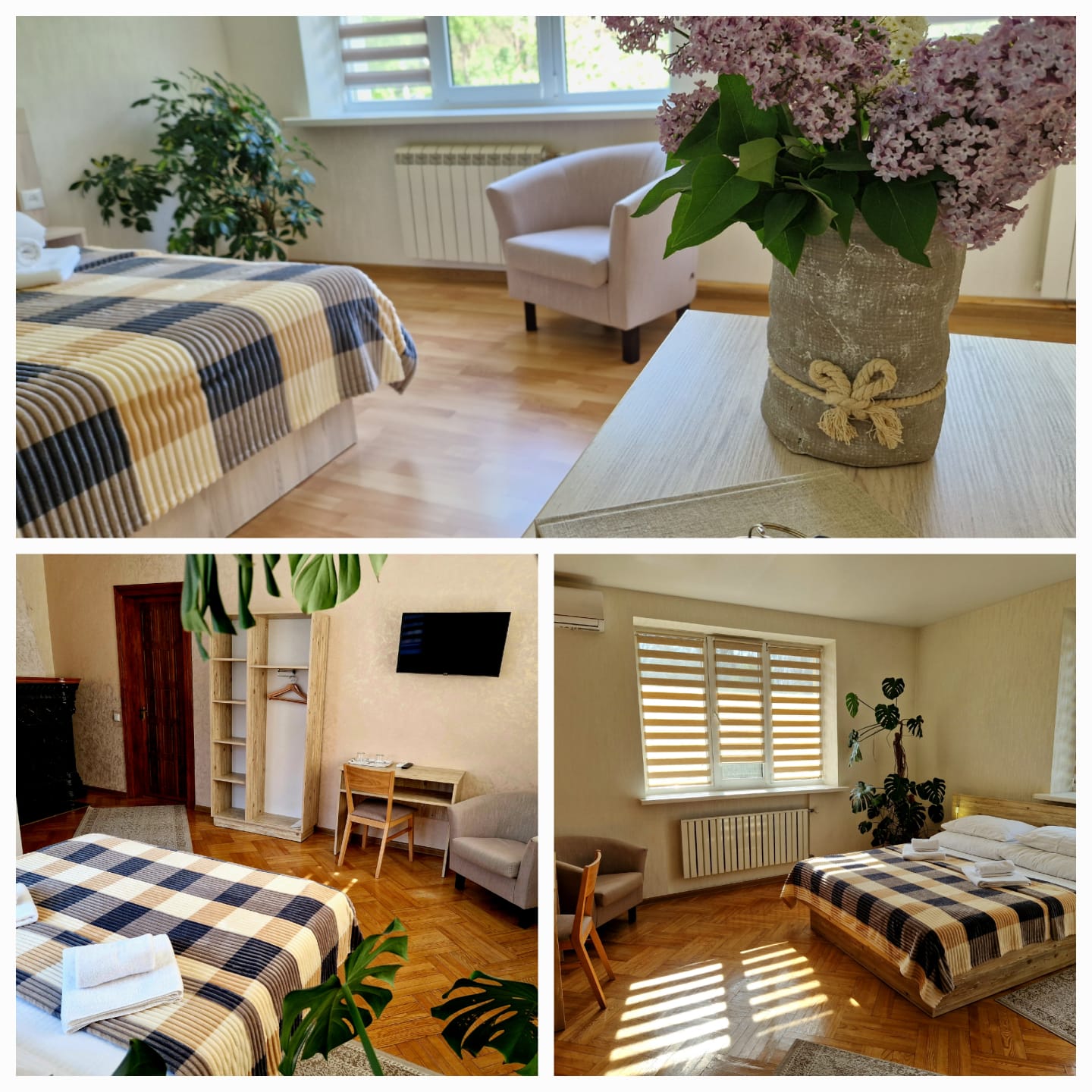 Затишний номер для відпочинку удвох — простий, комфортний і продуманий до деталей. Двоспальне ліжко 160×200, робоча зона та все необхідне для зручного перебування. Власний санвузол із душем, рушниками, феном і базовими засобами гігієни. Кондиціонер, телевізор і Wi-Fi — для вашого комфорту.